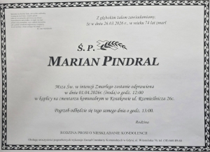 W dniu 26.03.2016 r. odszedł na Wieczną Wartę nasz serdeczny kolega Marian Pindral.