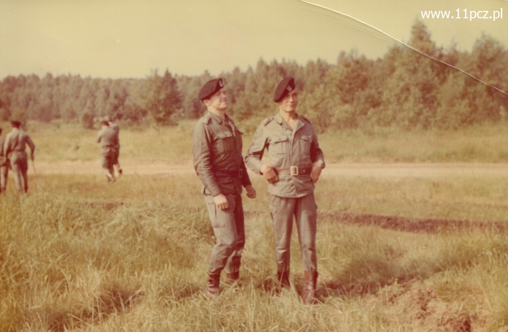 OSPWL Orzysz. Szkolenie z zakresu odpalania ładunków wydłużonych. Od lewej por. Ryszard Mazurkiewicz i ppor. Jerzy Szymaniuk