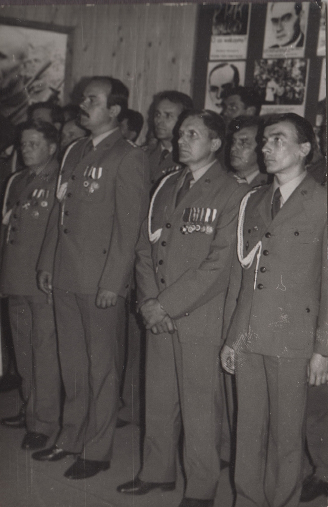 pożegnanie kolegi odchodzącego do rezerwy. Od lewej: Andrzej Borek, Czesław Wójtowicz, Jerzy Szymaniuk, Jan Garbarczyk, Robert Królak
